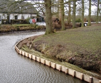Voor het plaatsen van beschoeiingen bent u bij Loonbedrijf Overvest aan het juiste adres. Beschoeiing is een constructie die een oever of waterkant beschermd tegen het afkalven. Beschoeiing wordt gemaakt van hout, beton of staal. van oudsher wordt vaak hout toegepast bij het plaatsen. De voorkeur gaat uit naar hardhout omdat dit een langere levensduur heeft.